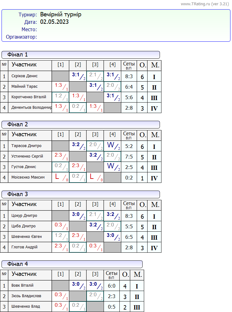 ВЕЧІРНІ ТРЕНУВАННЯ