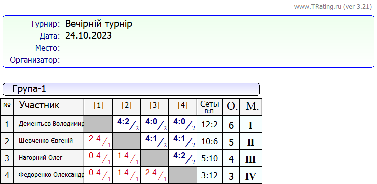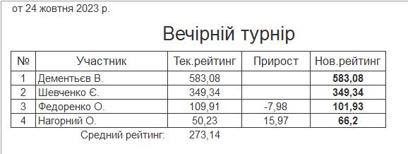Результати “Вечірнього турніру” за 24.10.2023