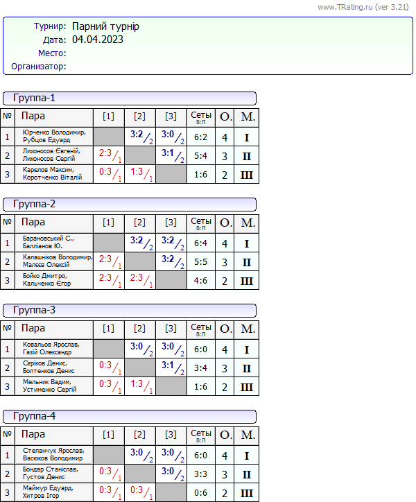 Результати “Парного турніру” за 04.04.2023
