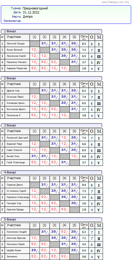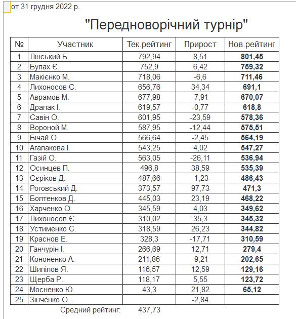 Результати “Передноворічного турніру” за 31.12.2022