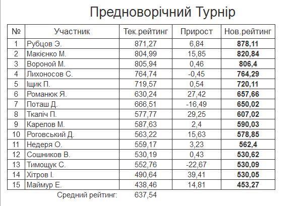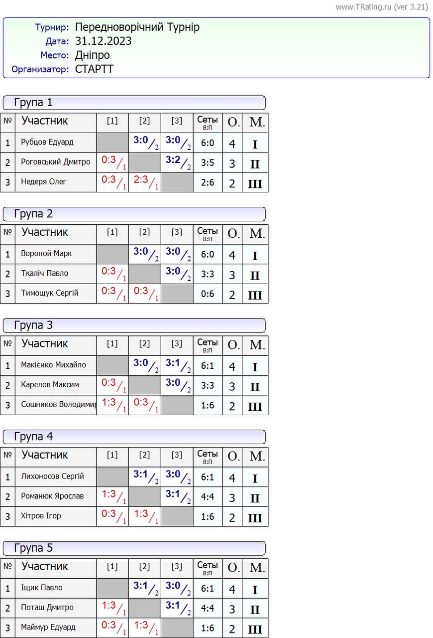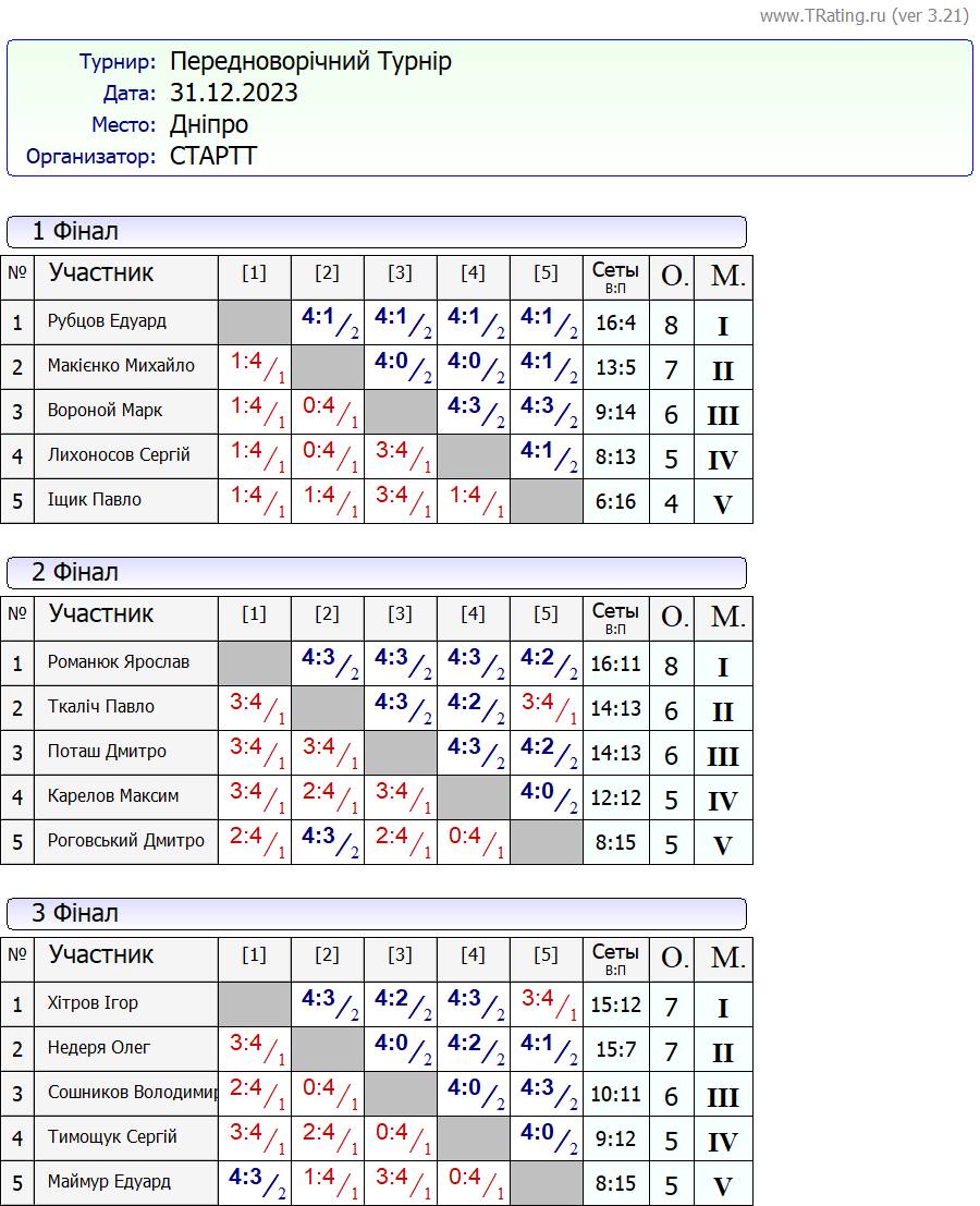 Результати “Передноворiчний Турнiр” за 31.12.2023