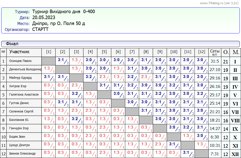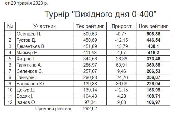 Результати турніру “Вихідного дня 0-400” за 20.05.2023