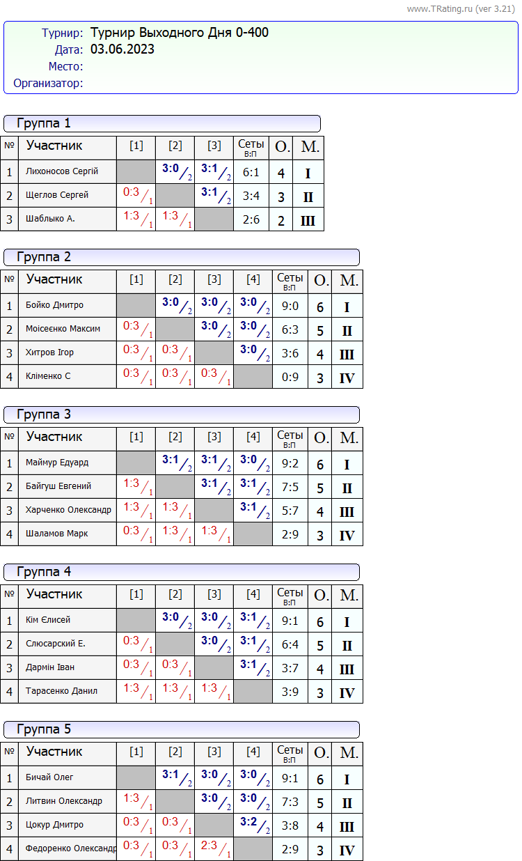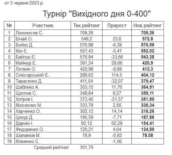 Результати турніру “Вихідного дня 0-400” за 03.06.2023