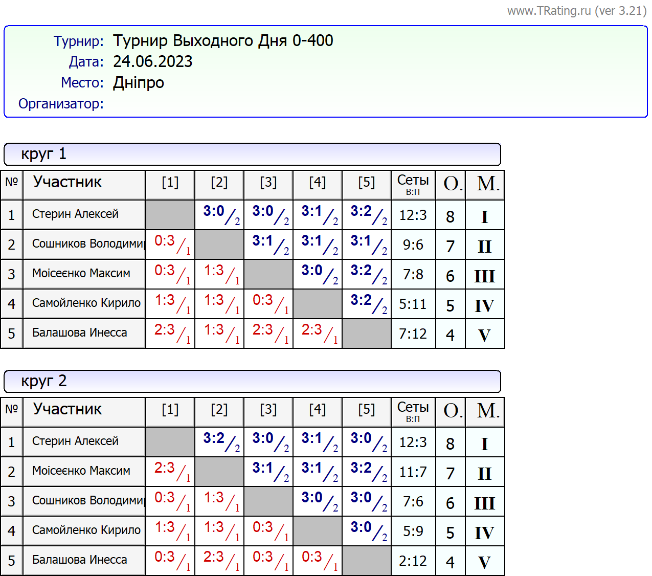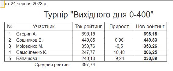Результати турніру “Вихідного дня 0-400” за 24.06.2023