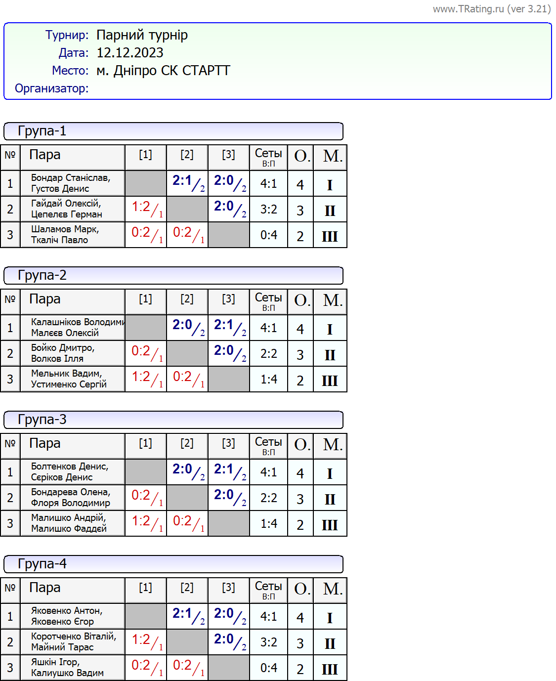 Результати турніру “Вихідного дня 0-400” за 16.12.2023