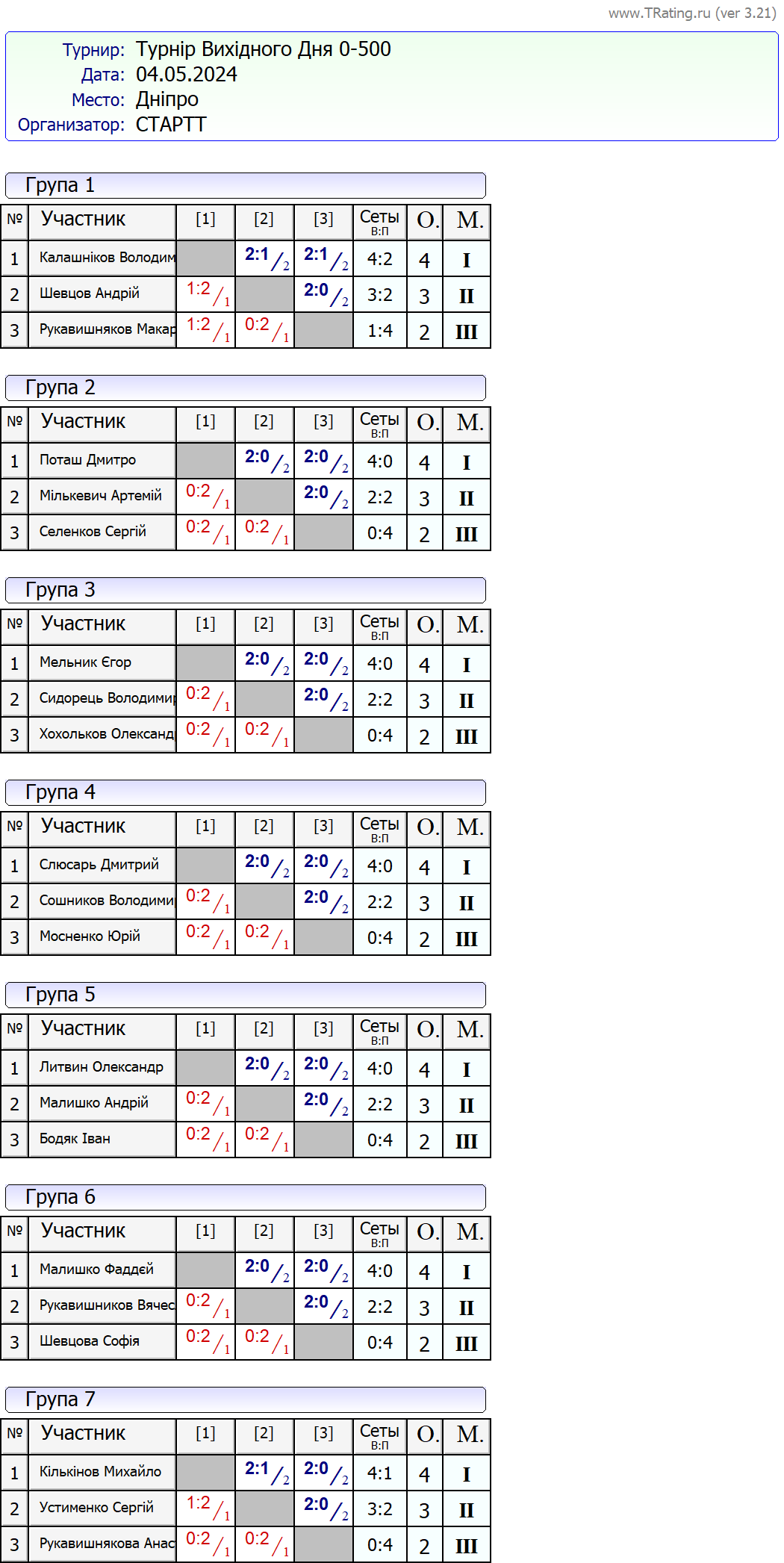 Результати турніру “Вихідного дня 0-500” за 04.05.2024