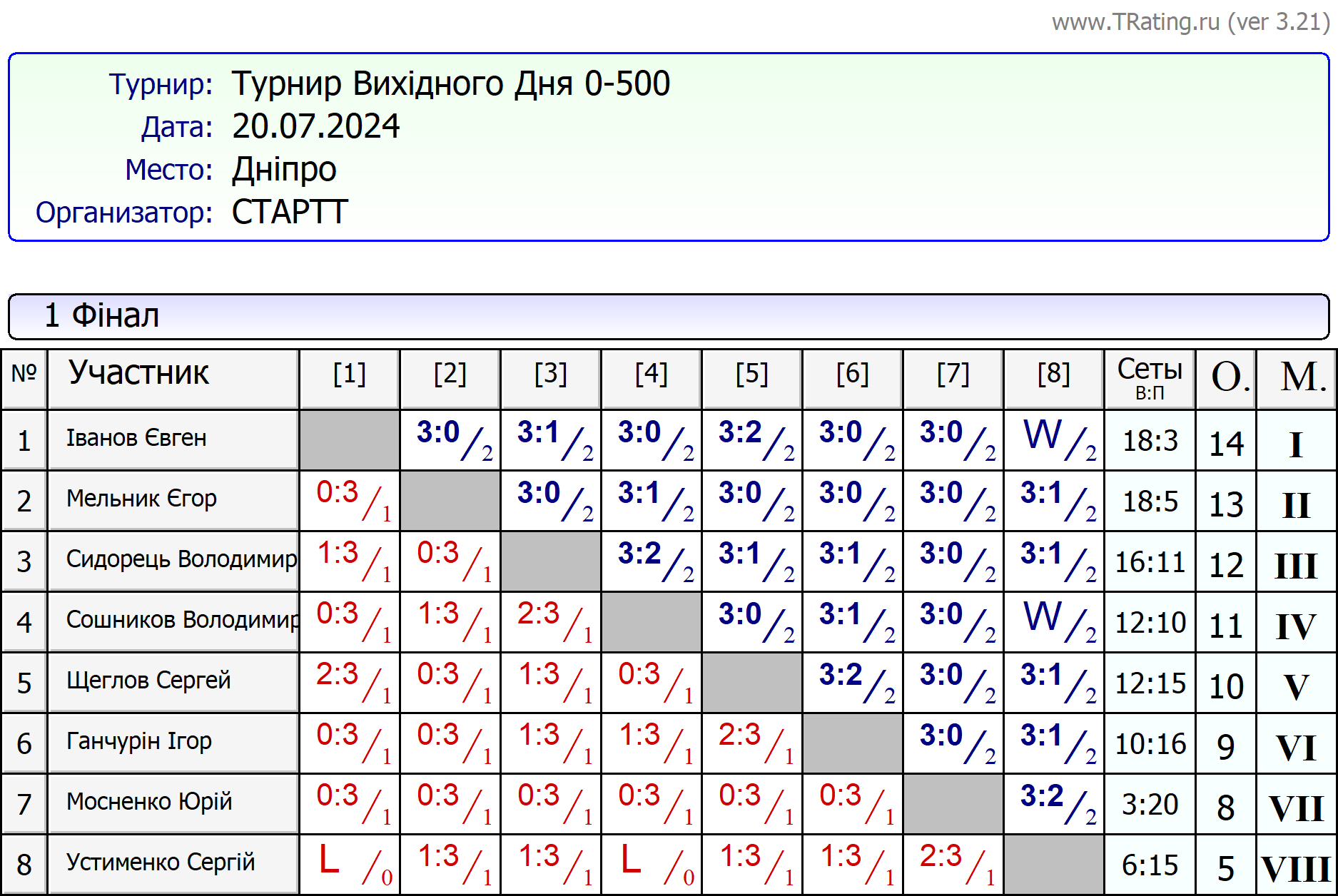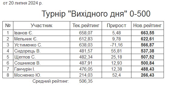 Результати турніру “Вихідного дня 0-500” за 20.07.2024