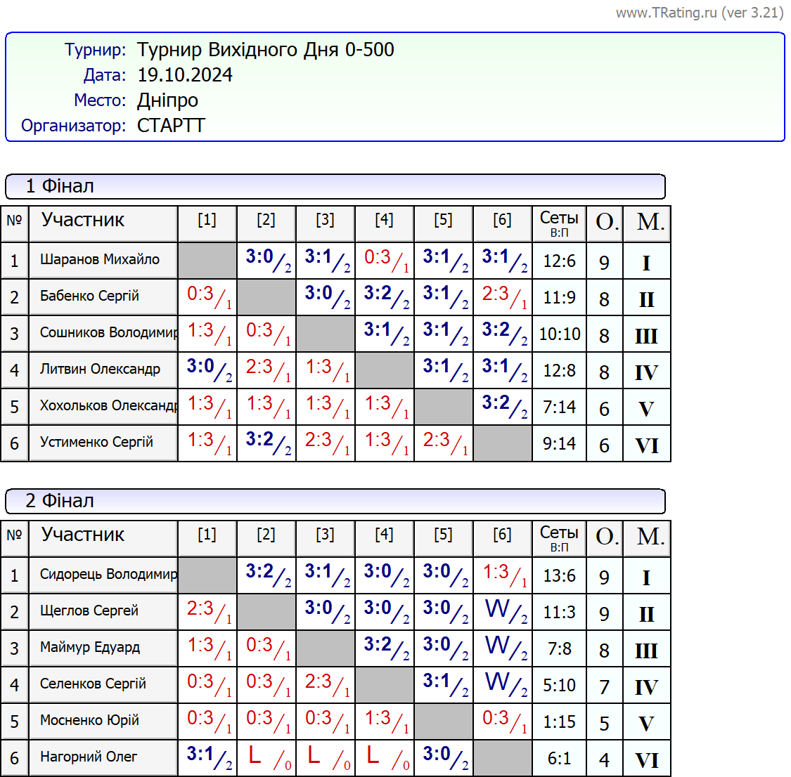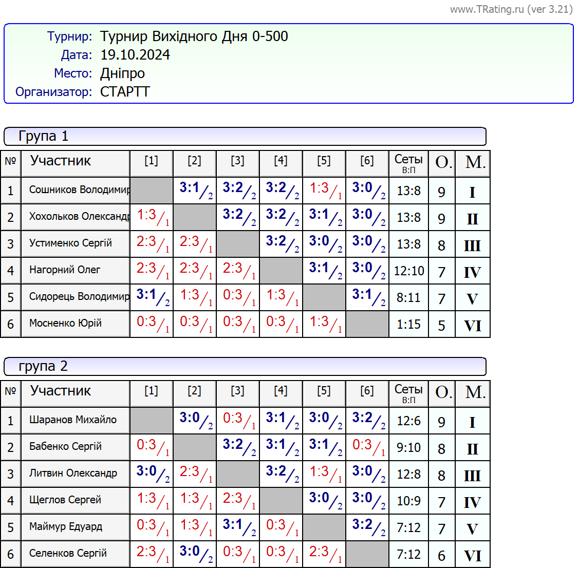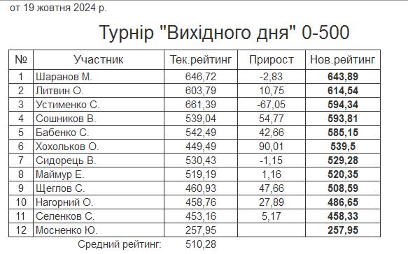 Результати турніру “Вихідного дня 0-500” за 19.10.2024
