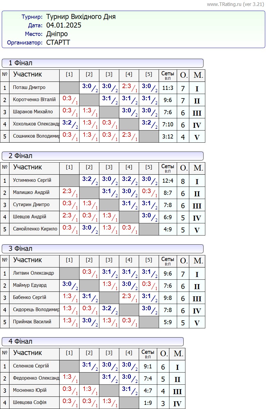 Результати турніру “Вихідного дня 0-500” за 04.01.2025