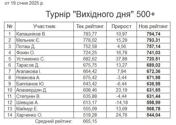Результати турніру “Вихідного дня 0-500+” за 19.01.2025