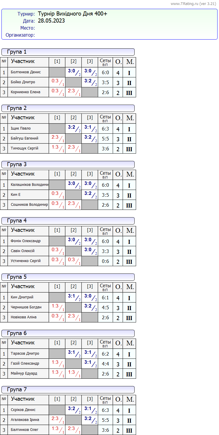 Результати турніру “Вихідного дня 400+” за 28.05.2023