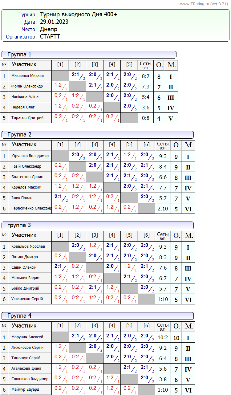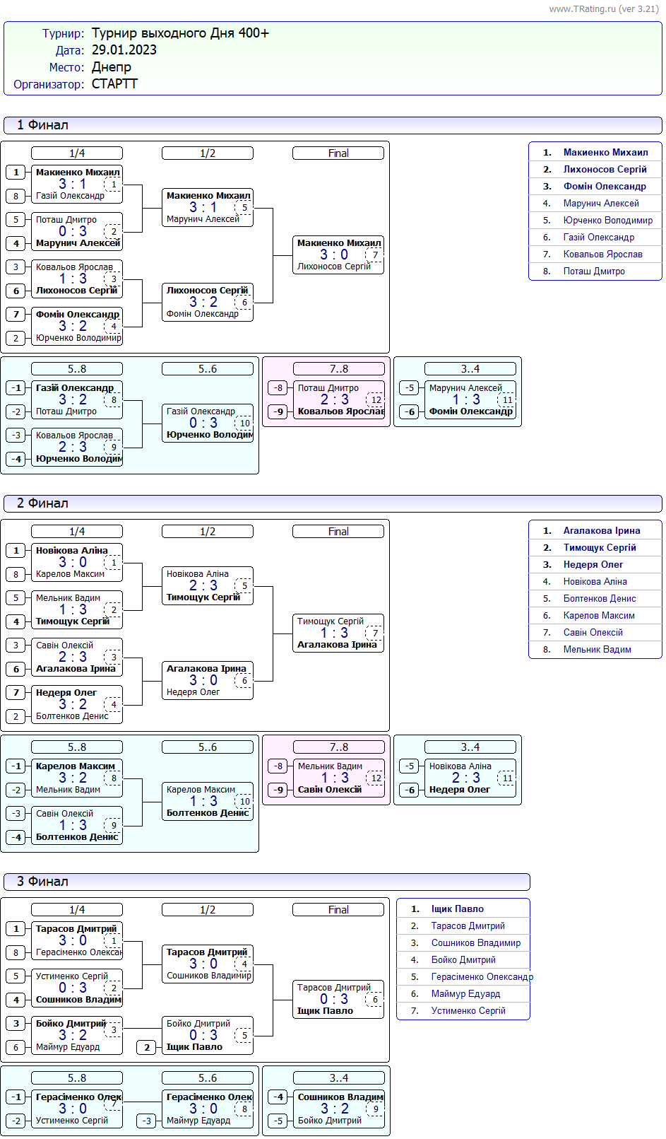 Результати турніру “Вихідного дня 400+” за 29.01.2023