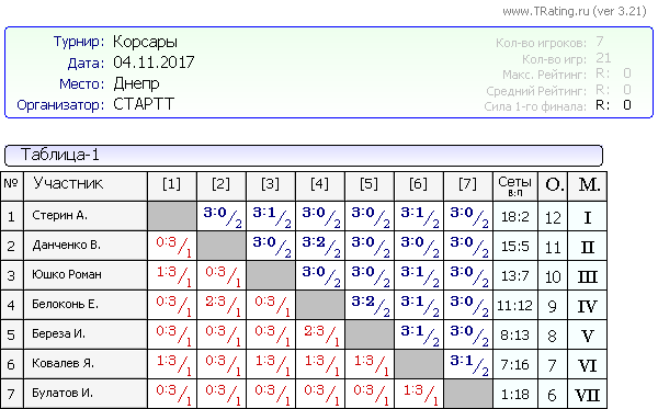 Вашему вниманию результаты турнира Корсары от 04.11.2017г
