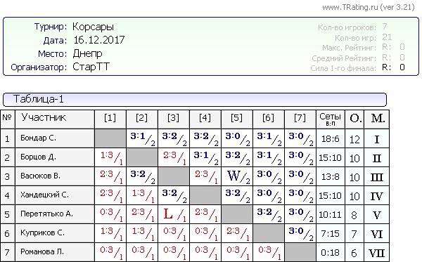 Вашему вниманию результаты турнира Корсары от 16.12.2017г