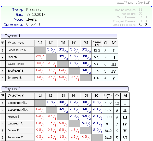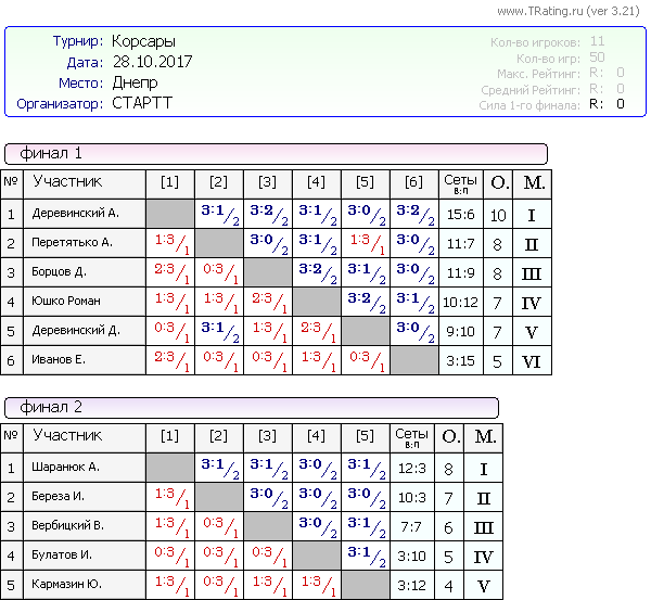 Вашему вниманию результаты турнира Корсары от 28.10.2017г