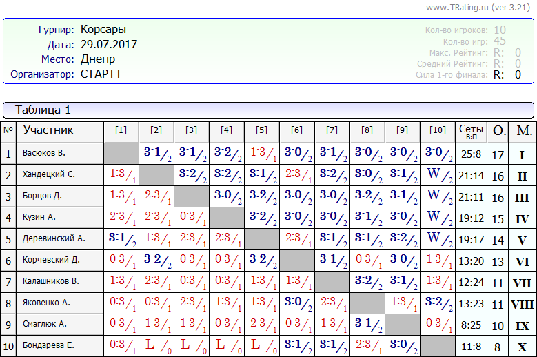 Вашему вниманию результаты турнира Корсары от 29.07.2017г