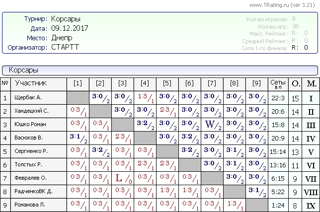 Вашему вниманию результаты турнира Корсары от 9.12.2017г