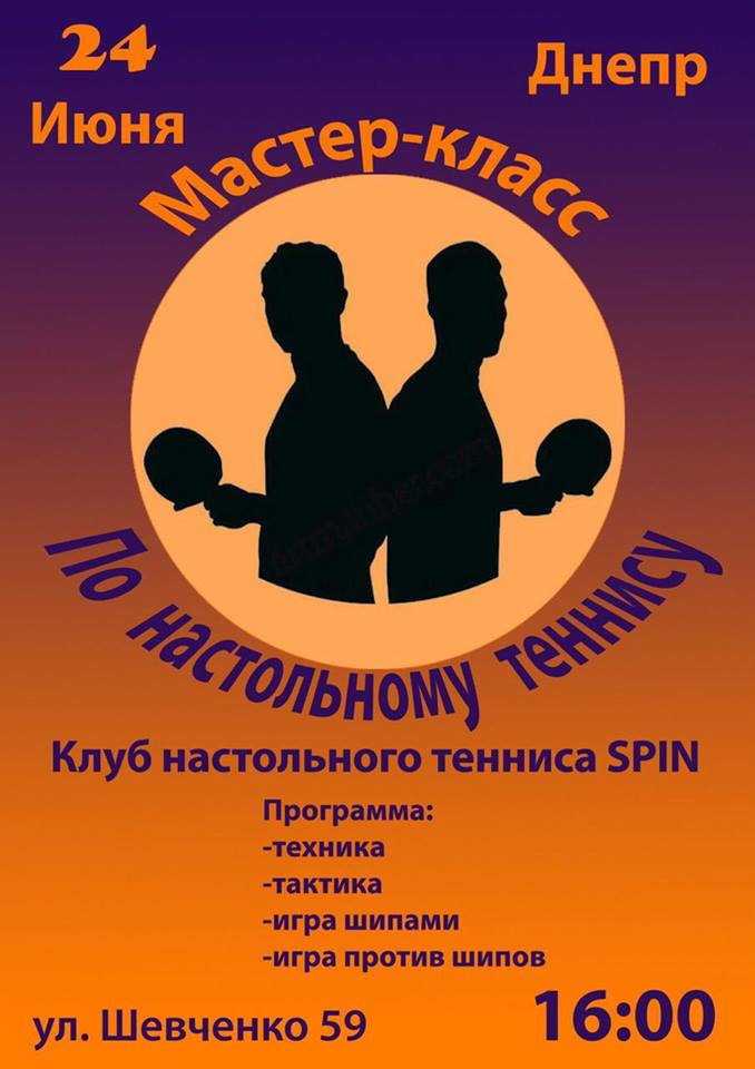 Завтра, 24 июня в КНТ “Спин” по адресу: г. Днепр, ул. Шевченко 59 пройдет мастер-класс от мастеров спорта Дениса Калачевского и Дмитрия Писаря. Начало в 16:00, вход свободный!
