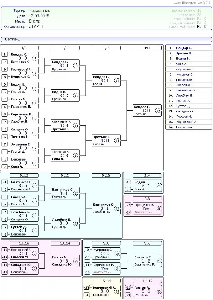 Результаты турнира Нежданчик от 12.03.2018г.