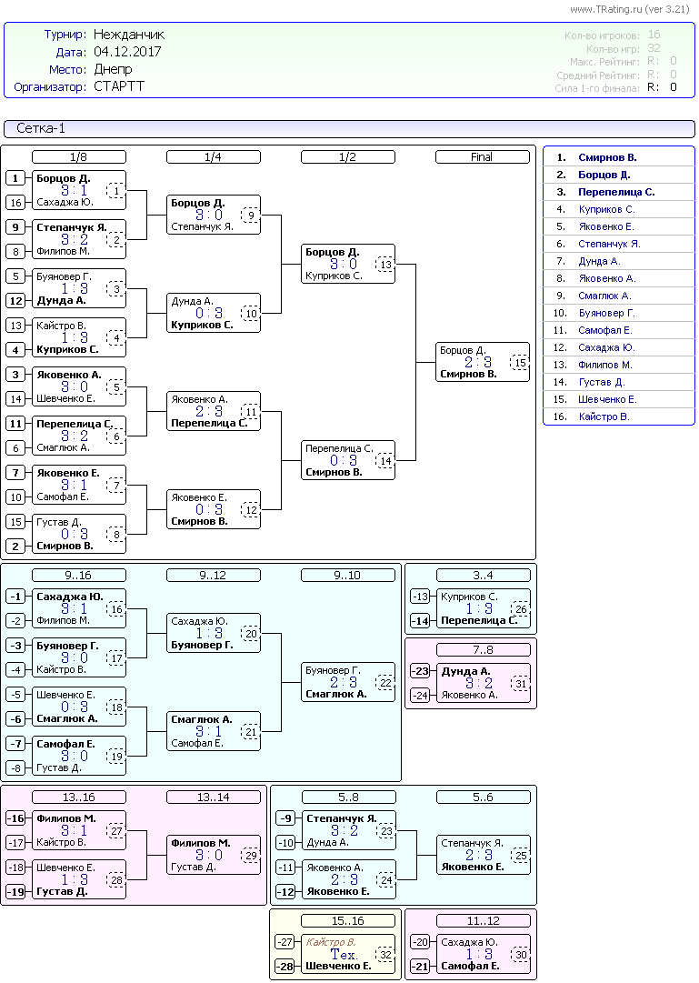 Результаты турнира Нежданчик от 4.12.2017г.