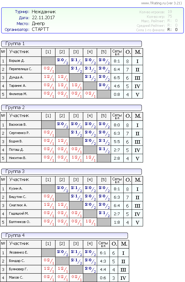 Результаты турнира Нежданчик от 22.11.2017г.