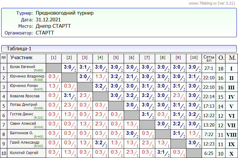 Результаты “Предновогоднего турнира” за 31.12.2021