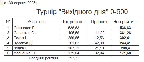 Результати турніру “Вихідного дня 0-500” за 30.08.2025