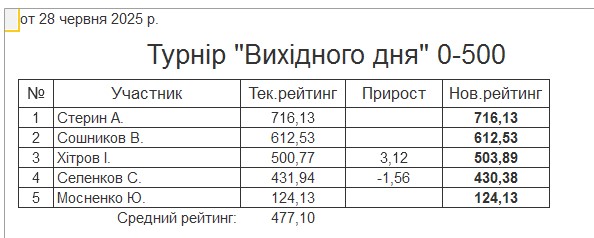 Результати турніру “Вихідного дня 0-500” за 28.06.2025