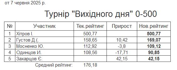 Результати турніру “Вихідного дня 0-500” за 7.06.2025