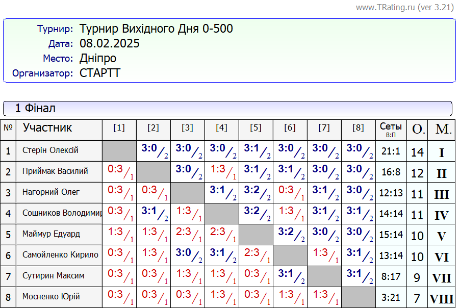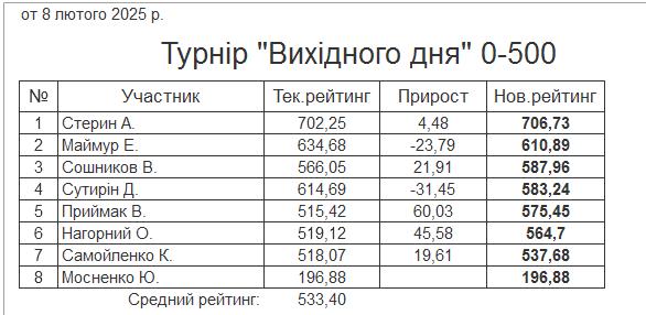 Результати турніру “Вихідного дня 0-500” за 08.02.2025