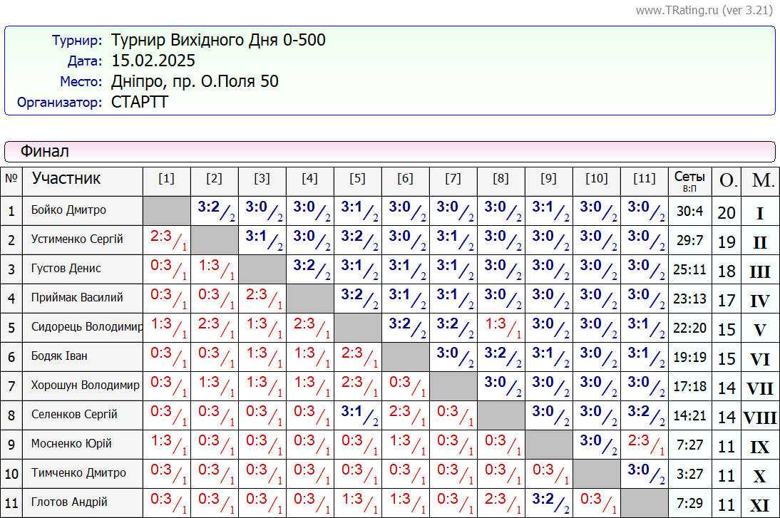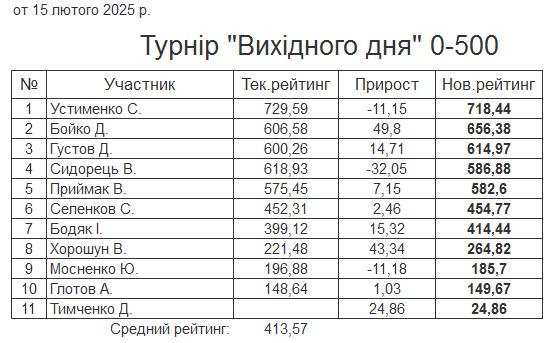Результати турніру “Вихідного дня 0-500” за 15.02.2025