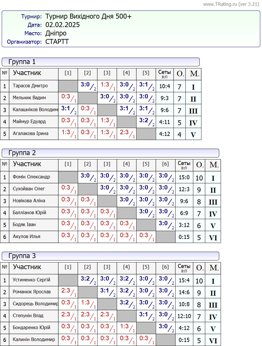 Результати турніру “Вихідного дня 500+” за 02.01.2025