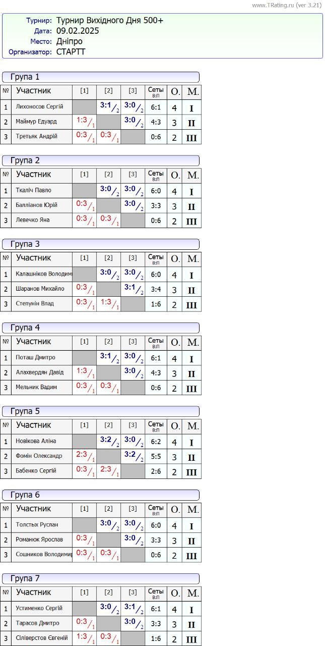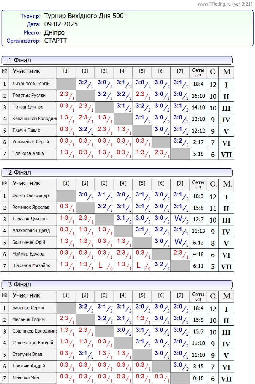 Результати турніру “Вихідного дня 500+” за 09.02.2025