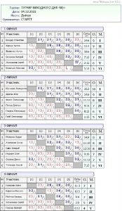 Результати турніру “Вихідного дня 400+ ” за 04.12.2022