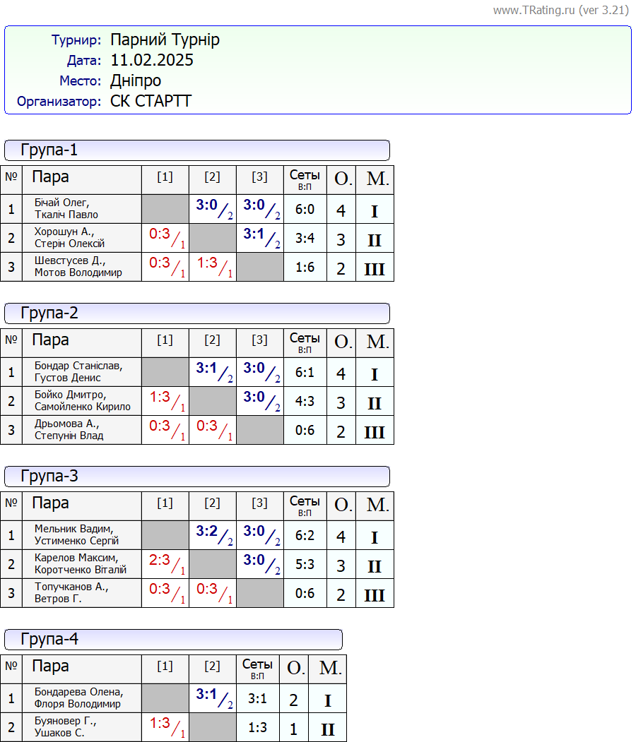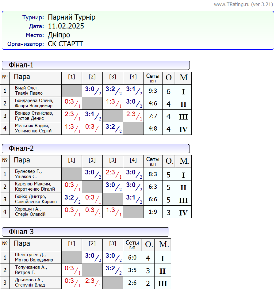 Результати “Парного турніру” за 11.02.2025