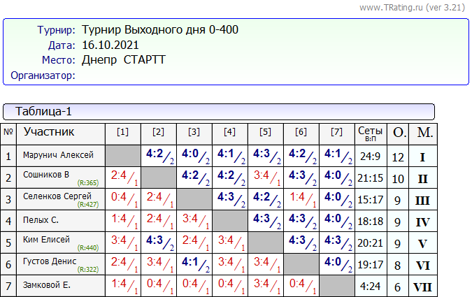 Результаты Турнира “Выходного Дня” 0-400 за 16.10.2021