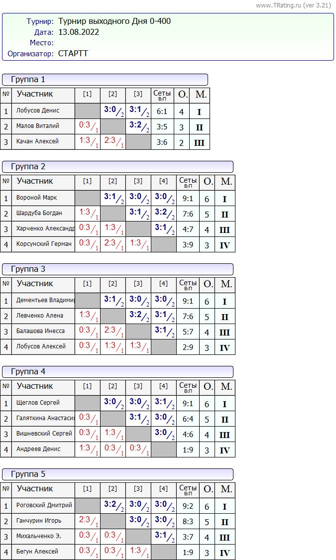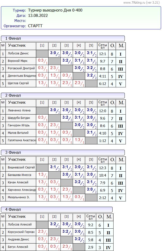Результати турніру “Вихідного дня 0-400” за 13.08.2022