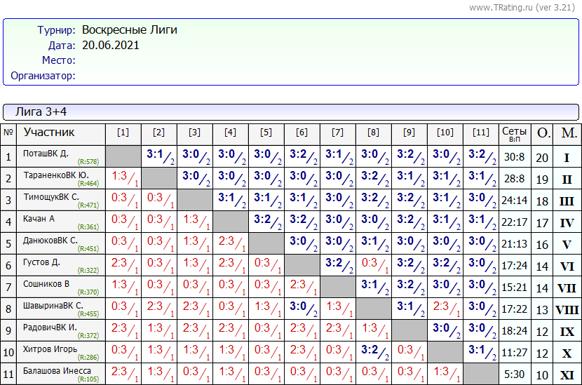 Из 4-й Лиги в 3-ю Лигу перешла Балашова И.