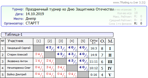 Результаты турнира ко Дню Защитника Украины от 14.10.2019