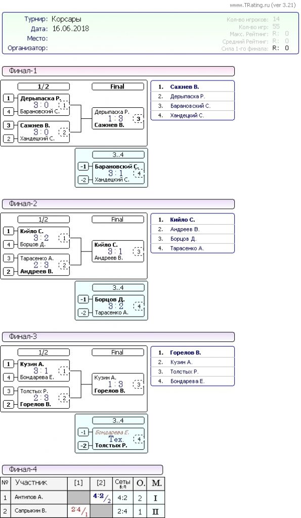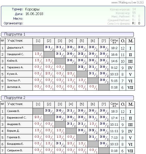 Вашему вниманию результаты турнира Корсары 16.06.2018 года