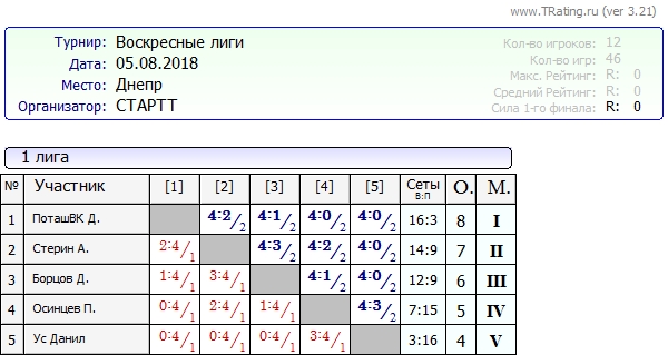 Турнир Воскресные лиги 05.08.2018г