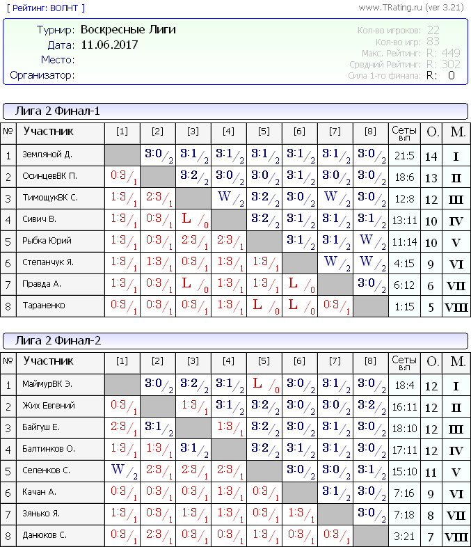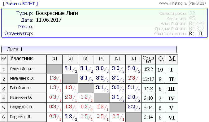 Воскресные лиги 11.06.2017г